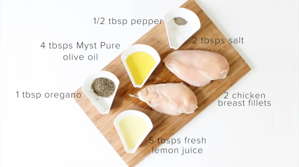 1. Start by preparing the marinade. In a bowl, whisk lemon juice, olive oil, oregano, salt, and black pepper. Use your hands to mix really well and place the chicken and marinate for about 2 hours.