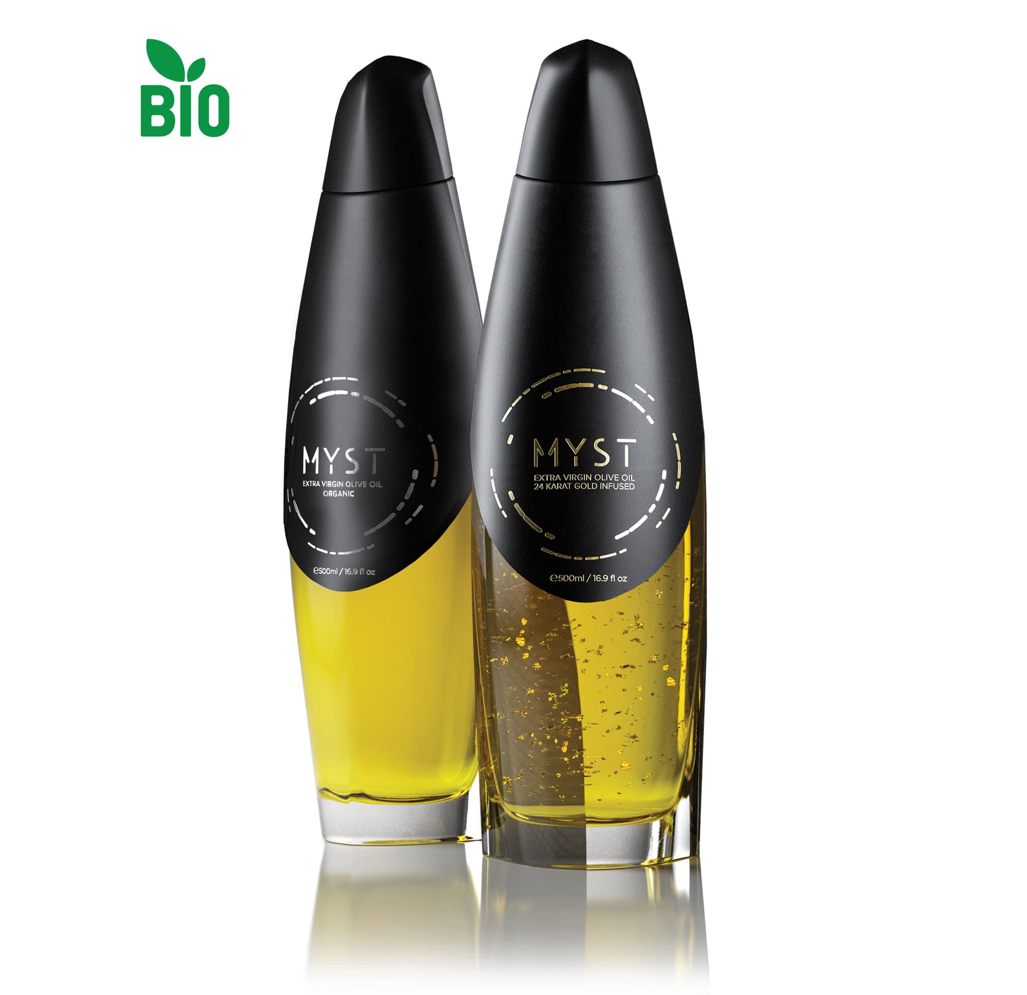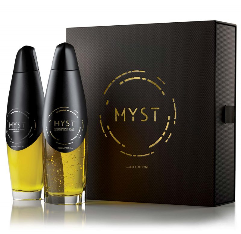 Ever since the times of Pharaohs in 2000 BC, gold has been considered as food able to win the favour of Gods. According to the ancient alchemist concepts, gold possesses legendary powers which contribute to a long and vital life. Olive oil is often referred to as “liquid gold.” So to emphasise the point, MYST added 24 karat edible golden flakes from the finest varieties.