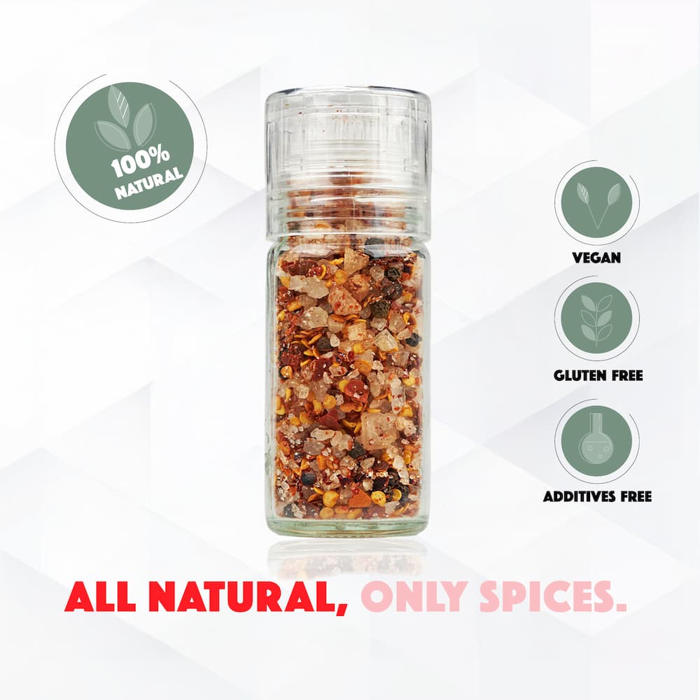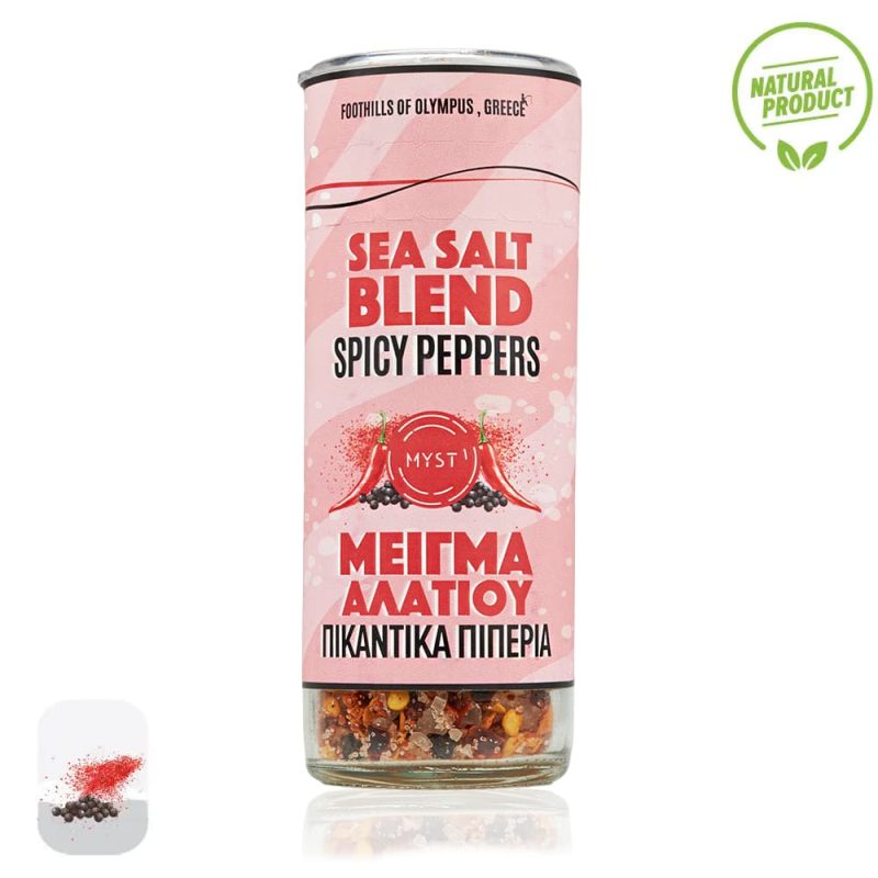 Pure sea salt from the foot of Olympus spicy florinis pepper ,boukovo and black pepper. Tasty, aromatic and spicy!