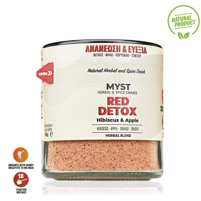 RED DETOX is a vibrant fruit-herbal drink made with hibiscus, apple and orange. Its bright red color and refreshing taste make it an uplifting daily hydration choice. Perfect for wellness routines, hot days, or as a natural fruity drink that supports balance and freshness throughout the day.