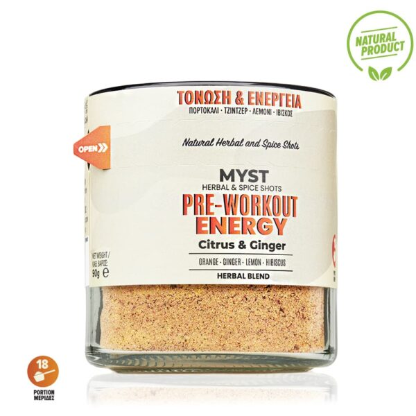 PRE-WORKOUT ENERGY is a clean, plant-based pre-training formula made from orange, hibiscus, ginger and mint. It provides fresh natural activation without caffeine, making it ideal for anyone wanting a light, clean and uplifting energy before exercise. Designed for focus, vitality and athletic clarity.